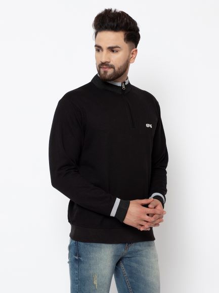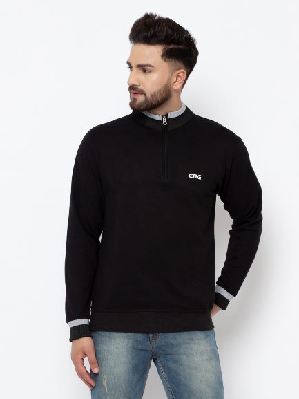 EPG Pure Cotton Fleece Men's Half Zip Jacket ( For Winters ) - Black