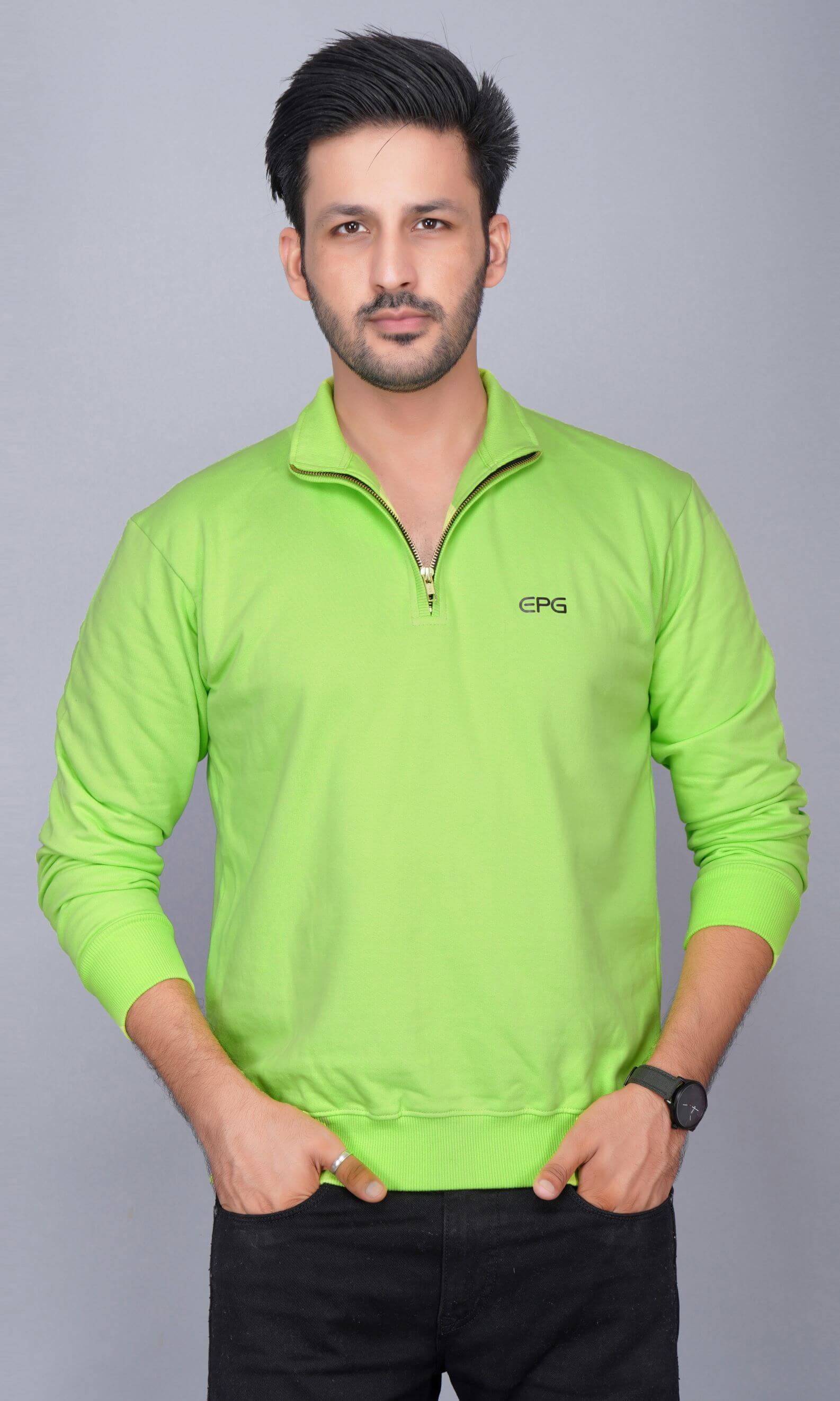 EPG Pure Cotton Fleece Men's Half Zip Sweat Shirt ( For Winters ) - Parrot Green