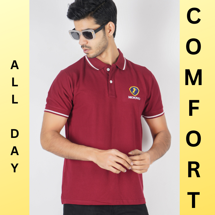 Luxotic Tipped Collar Rosewood Color Lycra Cotton Men's  Polo T-shirt