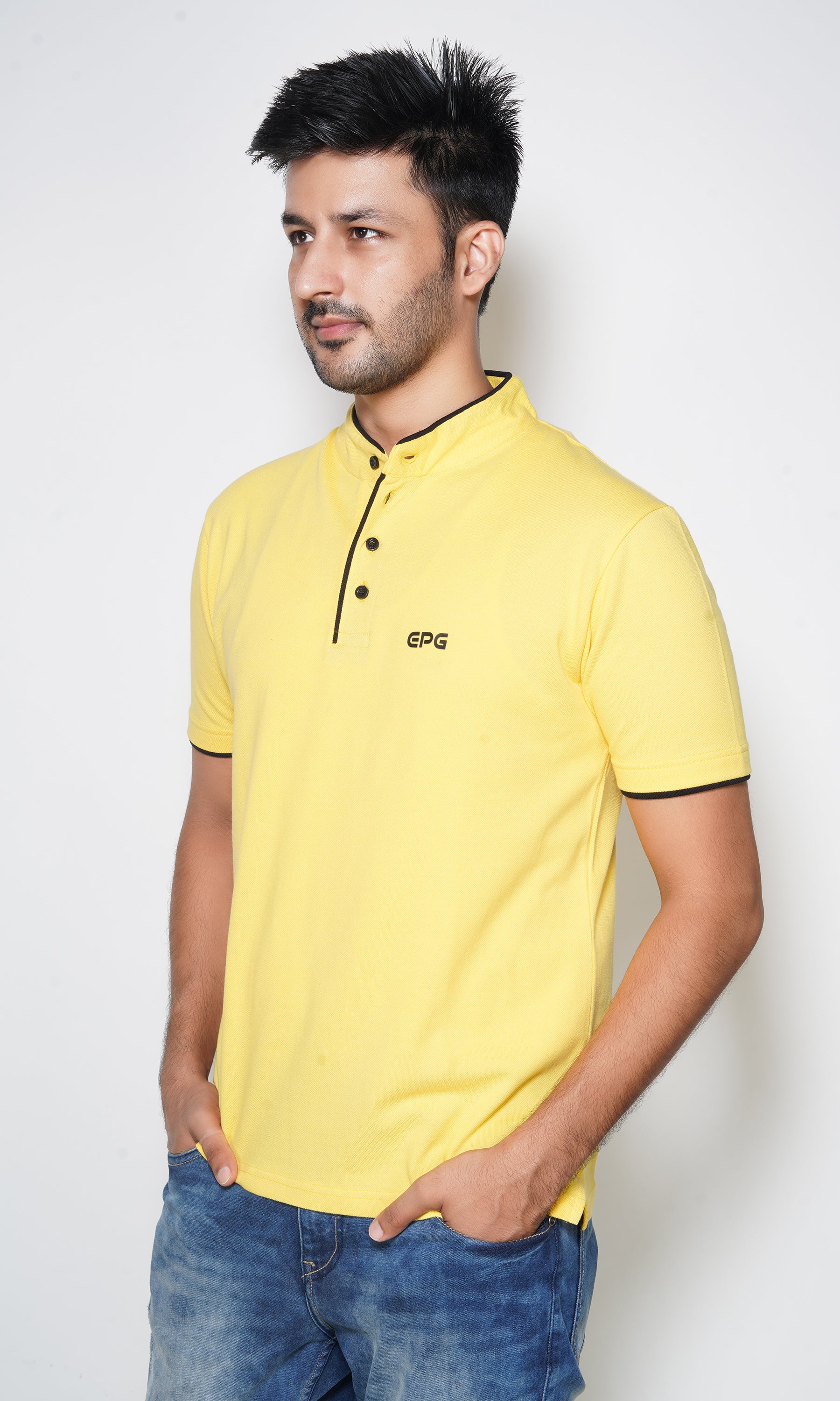 EPG Pure Cotton Men's Mandarin Collar Cotton T-shirt - Yellow
